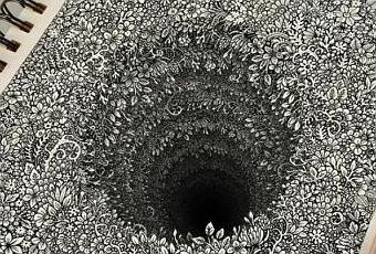 Des illustrations incroyablement complexes en forme de labyrinthe qui peuvent lui prendre de 3 à 6 heures de travail. Pour certaines il n’hésitera pas à leur donner du relief et du réalisme, en ajoutant des illusions d’optique à l’aide d’effets 3D réalisés sur Photoshop, donnant l’impression que ses œuvres complexes sortent littéralement de leur feuille de papier.