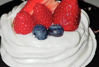 Néanmoins, j'aime bien l'anecdote du cuisinier néo zélandais, amour de la danseuse russe Pavlova et qui a crée ce dessert en son honneur... C'est vrai que la meringue fait penser à un tutu!