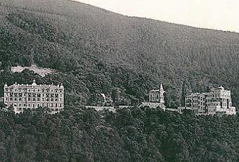Le Schlosshotel et le sanatorium d'Heidelberg en 1888Sissi et sa fille Marie-Valérie séjournèrent à Heidelberg du 5 avril au 1er mai 1884, après y avoir fait une excursion depuis Bade le 2 avril. L'impératrice Elisabeth y prend notamment des cours d'escrime chez le maître d'armes universitaire Friedrich Schulze (1851-1907). Elle y séjourneront à nouveau l'année suivante, du 2 avril au 10 mai 1885, puis, accompagnées du fiancé de Marie-Valérie, du 3 au 8 avril 1890.