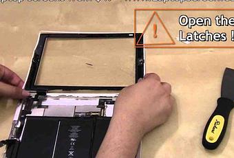 Pour faciliter le démontage de la vitre, celle-ci peut être recouverte de ruban adhésif pour fixer les pièces entre elles. Après avoir protégé le dos de l’iPad, utilisez un sèche-cheveux pour ramollir la colle et un cutter à lame large pour la couper. Vous pouvez ensuite retirer progressivement les morceaux.