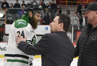 « Quand Pierre Pelletier m’a demandé de me joindre au personnel d’entraîneurs avec les Pétroliers, j’ai accepté sans hésiter. Les partisans des Titans, des Chiefs, des Prédateurs et des Pétroliers du Nord ont toujours été incroyablement passionnés. Cette année, nous misons sur une équipe qui veut gagner autant pour l’organisation que pour leurs incroyables partisans qui font trembler le Colisée. Fiers et engagés, ils veulent gagner. Ils saignent pour gagner ; ils encaissent les coups pour leurs coéquipiers ; ils jouent du hockey de séries éliminatoires. Ces gars-là ont des emplois et des obligations, mais quand ils arrivent à l’aréna, ils deviennent des guerriers. Ça fait longtemps que je suis impliqué dans le hockey et je suis extrêmement fier de faire partie de cette équipe. Il nous reste un bon bout de chemin à faire pour atteindre l’objectif ultime. Au dernier match, nous avons eu une foule de 2500 personnes qui a su faire une différence dans le match. Vous étiez littéralement notre septième joueur. Passez le mot, car vendredi le 29, au Colisée, nous avons besoin de 3000 spectateurs qui vont encore une fois faire la différence et qui vont encourager leurs guerriers. Faites partie de la vague ! »