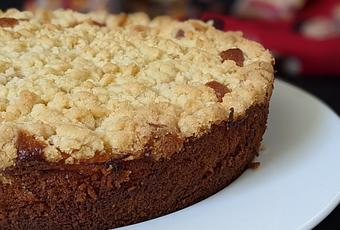Répartissez le crumble sur toute la surface du gâteau. Enfournez pour 45 min. vérifiez la cuisson en piquant une pointe au milieu du gâteau. Elle doit ressortir sèche.