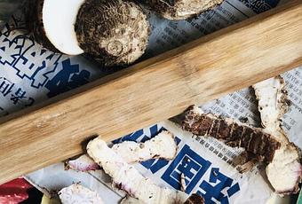 2 – Une fois les Taros râpés, ajouter la maïzena, la sauce soja, le sucre et le glutamate et mélanger. Râper le gingembre finement et l’ajouter à la préparation. Vous devriez obtenir une pâte assez épaisse.