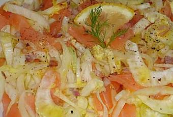 Voici la recette de la salade de fenouil au saumon fumé, une savoureuse salade légère à base de fenouil, endive et de saumon fumé, facile et simple à réaliser pour une entrée légère.