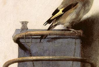 Après les acrobatie symboliques de Dou, revenons à la simplicité, voire même à l’austérité du Chardonneret de Fabritius. Le reconnaître comme un chef d’oeuvre de réalisme n’empêche pas de proposer des hypothèses, sinon sur les intentions de l’artiste, du moins sur la destination de l’objet.