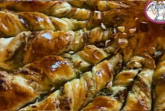 12. Badigeonner une seconde fois, ajouter quelques éclats de pistache ou quelques pignons de pin et enfourner à four préchauffé à 180° pendant 25 mn environ. Attention, surveiller la cuisson au bout de 20 mn!