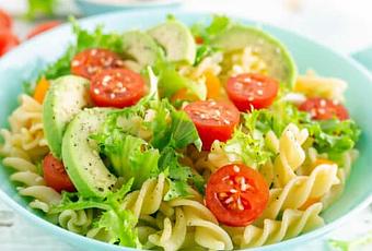 Salade de pâtes froide à l'avocat et tomate , une délicieuse entrée pour votre plat principal , voila la recette facile à la maison et pour toute la famille.