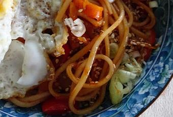Un œuf frit aux contours bien croustillants agrémentera parfaitement ce plat de nouilles :