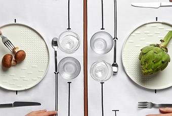 Ainsi les assiettes et plats disposent de repères type « braille« , les textiles guident pour retrouver les éléments dressés sur la table dans un but d’automne, de partage de l’expérience de la table ensemble.L’utile et l’ergonomique peuvent être élégants, nobles et éthiques.