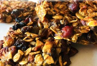 - 120 g de fruits secs en mélange au choix (amandes, noisettes, pistaches, noix de cajou, noix, concassés ou amandes effilées, raisins ou abricots secs, figues séchées, graines de tournesol, de chia…)