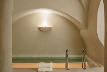 Enfin, si l’on réserve les massages à l’intimité de la chambre, on emprunte volontiers cet escalier dérobé qui dévoile, en sous-sol un petit espace spa ; bassin, hammam et sauna, lovés sous les voûtes centenaires peuvent être privatisés pour les clients de l’hôtel.