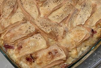 - Mélangez les oignons et les lardons à vos crozets.