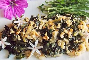 Pendant ce temps-là, je suis allée ettez à cueillir, dans mon jardin, la sarriette et l'origan. Lavez-les et émincez-les. Eteignez le feu etajoutez-les dans la poêle. Mréchauffer les pâtes dans de l'eau bouillante salée.