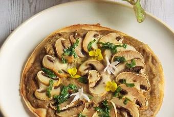 Aujourd'hui, je vous propose une Flammekueche lentilles et champignons (Vegan) (pour 8 petites pièces) :