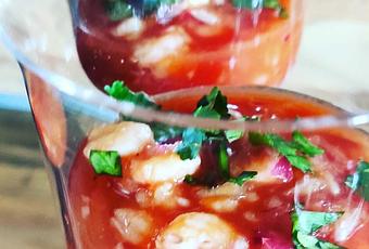 - Après 30 minutes, ajouter au bol de crevettes l'oignon, le ketchup et le tabasco et mélanger