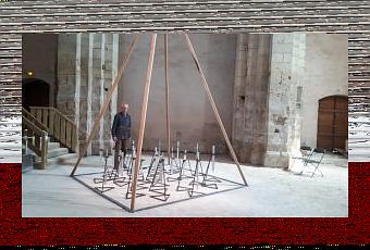 Quatre potences sont installées dans l’église Saint-Philibert. Will Menter (musicien et artiste plasticien) les nomme « pendules ». Il actionne chacun d’eux en transmettant un mouvement de balancier. Celui-ci vient toucher ou effleurer les matières posées au sol. La sonorité diffère suivant la matière: bois, pierre, ardoise ou métal. Sourds, clairs, vibrants…