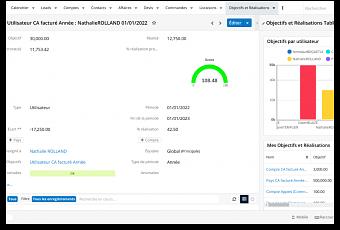La solution permet de définir et suivre des objectifs variés et de mesurer automatiquement les performances et réalisations.