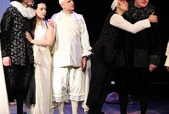 Dans un décor de port de pêche où Scapin attire dans ses filets sardines et baleines, la beauté des costumes transalpins du 17e siècle signe d'une somptueuse élégance ces Fourberies.
