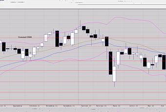 A très court terme, les 2 séances de jeudi et vendredi forment une structure en bas correspondants.Cette structure relativement rare (les 2 bougies doivent être noires) se forme par ailleurs sur le support des 5882 points, ce qui lui confère un certain crédit.Seulement, à partir du moment où nous devons craindre de nouvelles séances difficiles alimentées par la panique, nous devons restés prudents pour le court terme.En principe, la phase de capitulation devrait trouver son dénouement vers les 5360 points.Je rappelle que la fin d'un tel évènement se fait par l'apparition de gros volumes durant quelques séances lesquels préparent en général un violent rebond.Nous sommes près de la formation définitive de la bougie du deuxième trimestre. Le verdict sur un éventuel passage en tendance baissière sur cette unité de temps sera peut-être validé dans 8 séances. L'été sera chaud.