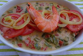 Servir avec les quartiers de citron vert eu du pain ciabatta.