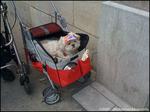 Il fallait bien que je reparle de vieux billet à propos des poussettes «canines» pour tomber par hasard sur ce petit pacha qui se promenait sur la rue Masson en fin de semaine... en portant la casquette !