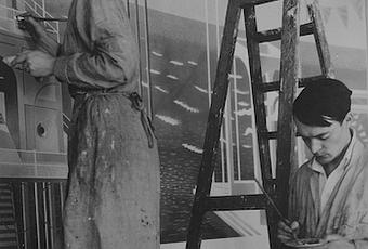 Arts vétérans documentaire la réalisatrice Margy Kinmonth présente un excellent argument pour élever le statut de l’aquarelliste et graveur Eric Ravilious dans ce film réalisé avec amour. biographique film. Son récit commence par la fin dramatique de Ravilious; artiste de guerre officiel, il a disparu au combat alors qu’il volait avec la RAF au-dessus de l’Islande en août 1942. Il n’avait que 39 ans et laissait derrière lui sa femme artiste, Tirzah Garwood (illustré ci-dessous, peignant avec son mari) et leurs trois jeunes enfants. Des extraits des écrits autobiographiques de Garwood et des lettres qui ont volé entre le couple au fil des ans, exprimés par Tamsin Greig et Freddie Fox, donnent vie à l’histoire.