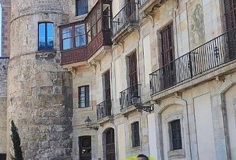 Fin du tour sur la place gouvernementale où l’on peut voir drapeaux espagnols et catalans « s’affronter » aux fenêtres.