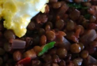 Ajouter en dernier un filet d'huile d'olive, du parmesan râpé et un œuf poché (j'ai raté le mien).