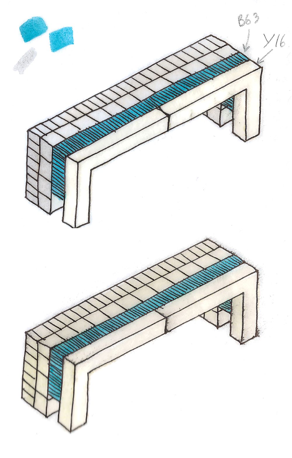 La collection est constituée de 7 pièces, parmi lesquelles des buffets, tables, bancs et consoles. 1:22 a une identité forte qu’elle tire des maquettes de projets architecturaux. On y retrouve une composition des volumes et des espaces tels que la conçoivent les architectes quand ils dessinent un projet.
