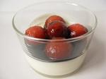 Au moment de servir, recouvrez chaque panacotta de boules de pastèque caramélisée et nappez de vinaigre balsamique. Viel Spaβ !