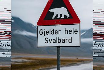 Aux abords de la ville, des panneaux routiers bien particuliers, avec un ours polaire au centre ! En effet, si on quitte les abords de la ville, il est interdit de sortir dans être armé ! Il faut dire que l’ours polaire rôde dans les parages, jusqu’en ville même (des personnes ont perdu la vie suite à des attaques). Un panneau à ne pas prendre à la légère ici, ce n’est pas un mythe !