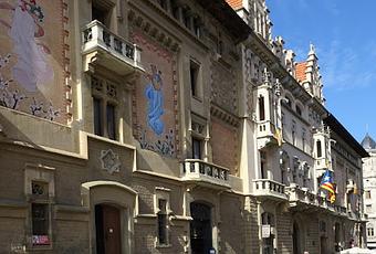 Casa Masferrer Souligne sa façade avec de beaux sgraffites, une tour et le jardin avec balustrade où se trouvent quatre personnages qui symbolisent les quatre saisons.