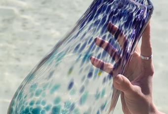Chaque pièce est unique et soufflée à la bouche au Portugal. La couleur est subtilement utilisée, on dirait même qu’elle a été déposée délicatement sur ces pièces de verre.
