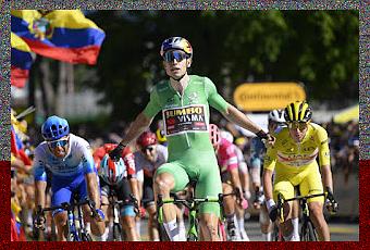 Nous n’en étions pas là. Saoulés de lumière et de chaleur en ce jour du soigneur, nos Géants pénétrèrent dans le canton de Vaux, au cœur de l’après-midi, sur des positions figées et un écart à minima avec les échappés, moins de deux minutes. Le scénario, sans saveur et donc ennuyeux, parût dès lors écrit à l’avance. De quoi alimenter la chronique, nous vîmes toutefois Thibaut Pinot aller au sol à son tour, puis prendre une musette en plein visage lors d’un ravitaillement. Et lorsque le gros de la troupe longea les berges du Léman, nous comprîmes que nous assisterions à une nouvelle «course de côte» dans l’ultime rampe du Stade Olympique inondée de spectateurs. Lausanne, capitale administrative du sport mondial qui accueille les sièges d’une quarantaine de fédérations internationales, recevait les Forçats pour la sixième fois de son histoire. Les deux fuyards rescapés (d’abord Cattaneo, puis Wright) rendirent les armes au pied de la bosse. Et pour la énième fois, les cadors, maillot jaune en tête, entrèrent en action dans l’usage exclusif de la robustesse explosive. Sélection sèche et brutale. Les meilleurs devants (Pogacar, Rogliz, Vingegaard, Bardet, Gaudu, Martin, etc.), les autres à l’agonie. Nous crûmes un instant que Pogacar allait remettre ça, mais, imbattable dans l’exercice des sprints en faux-plat montant, l’ineffable couteau-suisse belge Wout Van Aert (Jumbo) vint cueillir son deuxième succès depuis le Danemark, confortant son maillot vert.