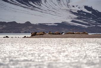 Il y a un petit groupe de morses qui squatte cette petite plage. Nous avons des spécialistes des pinnipèdes avec nous, ils établissent le périmètre d’où nous pourrons les regarder sans les déranger. Je pensais qu’ils allaient un peu s’agiter en nous voyant, mais même pas, ils continuent à faire la sieste, se gratter ou se rouler dans l’eau. C’est impressionnant de voir leurs défenses d’aussi près, ainsi que toutes les marques qu’ils ont sur leur corps. Le vent est dans la bonne direction, pour nous : pas trop d’odeurs de cette joyeuse équipe qui fait des bulles dans l’eau 😉.