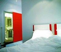 Le monty hotel par sur de bonnes bases, un hôtel au look de maison (comme il y en a de si Belles a Bruxelles), une vache rouge devant l'entrée (Bruxelles en avait été envahie il y a quelques années!) et une entrée et un hall-salle à manger-réception-salon dans les tons de gris macadam et rouge peuplée de plein de petites pièces design que j'aime bien (notamment une RAR de Eames édition Herman Miller que l'on ne trouve plus très facilement...)... Puis ca se gâte assez vite, l'hôtel est placé au croisement d'un grand boulevard bien passant et d'une rue étroite bien bruyante, sans double vitrage et sans clim', ce qui donc une nuit assez agitée surtout par des températures équivalentes nà celles de ce week end! La chambre est microscopique (mais bon ca finalement c'est pas non plus hyper grave, on se souvient de la sublimissime chambre de l'hôtel Amour qui ne devait pas éxéder les 8m2...)