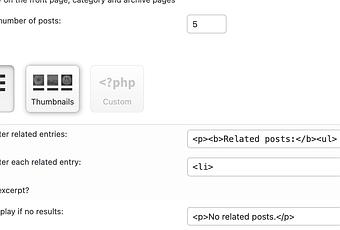 YARPP permet aux utilisateurs de définir le nombre de liens pour chaque section et de classer les liens en fonction d’un score de pertinence YARPP. Les utilisateurs peuvent également inclure des liens vers des pages connexes et d’autres types de publications.