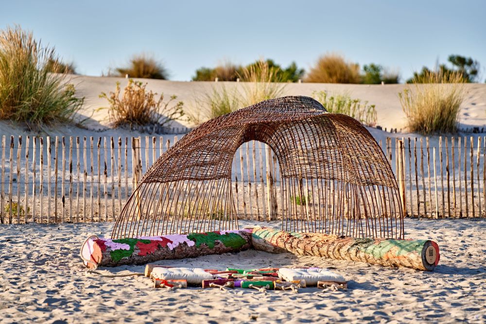 La designer et artisane Clémentine Chambon présente Shelter, une installation éphémère et interactive placée sur une plage de Carnon.