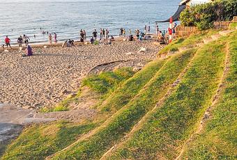 Regardant la plage de Baishawan depuis les marches de DazzlerBien qu’il soit un peu plus loin, Baishawan est très populaire et, en été, des rangées de tentes blanches improvisées bordent la plage. Pour les restaurants autres que Dazzler, il y a peu mais pas autant de choix qu'à Qianshuiwan. Vous pouvez louer des planches de surf ici, mais pour une meilleure navigation, je vous conseillerais de vous rendre à Wai Ao (n ° 5 ci-dessous). Vous pouvez également payer un peu d'argent pour vous arroser avec de l'eau fraîche au surf shop après votre baignade.Baishawan est situé juste avant le cap Fugui (富貴 角), la pointe la plus au nord de Taïwan, où vous pouvez trouver un phare et quelques sentiers de randonnée agréables, même s'il peut y avoir beaucoup de vent !