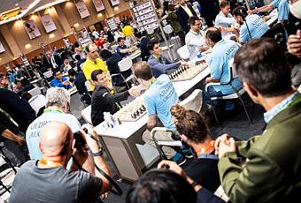 Le champion du monde d'échecs Magnus Carlsen débute l'olympiade d'échecs en remportant une finale de Dames " théoriquement " nulle contre Georg Meier, un GMI allemand qui joue pour l'Uruguay - Photo © Lennart Ootes