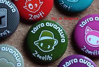 Il s’agit d’un badge à l’effigie de personnages que l’on rencontre dans les parcours de Géocaching Terra Aventura (spécifique à la Nouvelle-Aquitaine). Ces drôles de bouilles représentent chacun une thématique. Par exemple, Zonelib’ évoque la résistance, Zéïdon le monde aquatique.
