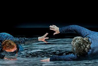 Roland Schwab parvient à nous faire défiler dans les couloirs du temps dans une transcendance qu'exprime le jeu des ovales et des vidéos qui se dévident sur les deux niveaux, comme si, avec les deux personnages principaux, nous étions aspirés dans un vortex de lumières ou dans un tourbillon aquatique. Le metteur en scène nous entraîne dans son univers romantique et spirituel et nous fait voir que l'amour transcende la mort même si, comme c'est le paradoxe de l'oeuvre de Wagner, il ne se réalise dans dans l'au-delà. La mise en scène veut y croire et y insiste, mais Schwab introduit aussi un couple d'humains qui pratique l'amour au quotidien de la vie partagée : pendant l'ouverture, le rideau entrouvert laisse voir en son centre deux humains qui se côtoient tendrement, tête contre tête, épaule contre épaule ; au final, alors que meurent Tristan et Isolde et qu'Isolde entame le Liebestod ("Mild und leise wie er lächelt"), ce même couple vieilli, en fin de vie, et avançant à pas prudents et mesurés depuis le fond de scène, contourne l'ovale du lac chacun de son côté pour se rejoindre et se côtoyer avec amour en avant-scène au baisser du rideau. L'amour pour Roland Schwab est romantique, unique, familial et fidèle, et a valeur d'éternité.