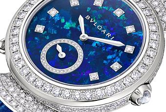 " Cette montre témoigne de notre volonté de proposer des complications mécaniques aux femmes, en portant autant d'attention à leur allure qu'à leurs caractéristiques techniques. Cette montre joaillière Divas' Dream, avec son cadre en opale, est pleine de charme. Elle possède également une fonction répétition minutes, un mécanisme très complexe et sophistiqué. Elle sonne les heures, les quarts d'heure et les minutes avec une mélodie spécifique ", explique Antoine Pin, directeur général de la division horlogère de Bulgari. DIVAS' DREAM RÉPÉTITION MINUTES Le temps résonne avec une magnifique poésie
