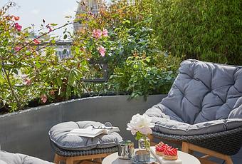 Depuis le rooftop, la vue imprenable sur Les Invalides ou la Tour Eiffel est aussi appréciable que le spa avec jacuzzi extérieur, presque inédit à Paris !
