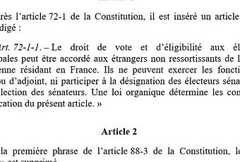 Le député (LREM/Renaissance) Sacha Houlié a déposé le 2 août 2022 sur le bureau de l'Assemblée Nationale une proposition de loi constitutionnelle (n°178) visant à accorder le droit de vote et d'éligibilité aux élections municipales aux étrangers non ressortissants de l'Union Européenne résidant en France. Il a fallu plusieurs jours pour la classe politique s'en émeuve.
