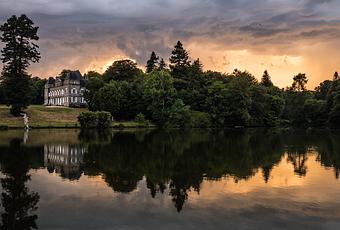 sunset sur l'étang du château de Trohanet par un soir d'orage