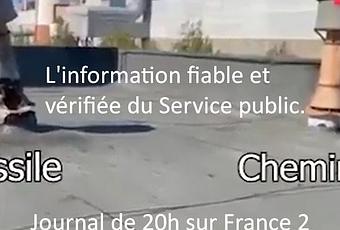 Selon la journaliste du service public de propagande étatique, un missile russe n’aurait pas explosé sur le toit de la centrale (jusqu’à présent aux mains des Russes) ; nullement étonnée que les militaires russes tentent ainsi de détruire une centrale dont ils ont le contrôle depuis plusieurs mois au risque de déclencher un incident nucléaire majeur, le reportage présente alors les images … d’une cheminée abimée comme étant les restes d’un missile. Plus c’est gros, plus ça passe. Mais plus ça se voit aussi :