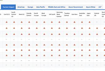 D’autres signalent que la mise à jour problématique a affecté les clusters Azure Kubernetes Service (AKS). Et les choses ne semblent pas bien se passer sur la base du tableau de bord Azure, qui est actuellement rempli d’icônes d’avertissement de perturbation à travers le monde pour plusieurs services cloud.