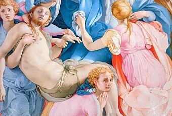 Vasari est laconique, imprécis quant à la vie amoureuse du Pontormo. « Surtout il aima toujours tendrement Bronzino, qui l’aima pareillement, en reconnaissance du bénéfice qu’il avait reçu. » La permanence d’un sentiment laisse à toutes les explications. Nous ne pouvons en imaginer l’histoire que par celles que nous avons lues ou vécues. Pontormo fut le maître de Bronzino. Leurs styles différèrent rapidement. Le respect de l’un équilibrait la vénération de l’autre. Pontormo éprouva sans doute de l’amour pour son dernier apprenti Battista. Celui-ci abandonnait souvent la maison du peintre et revenu, de remords ou de rage se repliait sur lui-même. Dans le journal du Pontormo, le sentiment d’amour est exprimé, la souffrance aussi. «... mon Battista sortit le soir et il savait que je me sentais mal (et il ne rentra pas), si bien que je dois m’en souvenir toute ma vie». L’abandon de l’aimé a le pouvoir de nous faire oublier que la mort oblige à abandonner le monde. Le temps passant et les idées s’enchaînant, l’abandon de l’aimé illustre tout abandon et la mort redevient la présence obsédante. « Car, Seigneur, les grandes villes sont perdues et décomposées ; C’est là que vivent, dans la misère et la détresse, en de profondes chambres, des hommes aux gestes anxieux . »