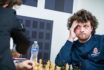Avec les Noirs, Hans Moke Niemann a réalisé dans la ronde 3 de la Sinquefield Cup ce que tous les joueurs rêvent secrètement, battre le meilleur joueur de la planète, le Norvégien Magnus Carlsen (2861) - Photo © Lennart Ootes